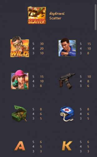 กระสุน หากสะสมได้ 3, 4, 5 อัน จะได้รับอัตราการจ่ายตามลำดับ 5, 6, 8
