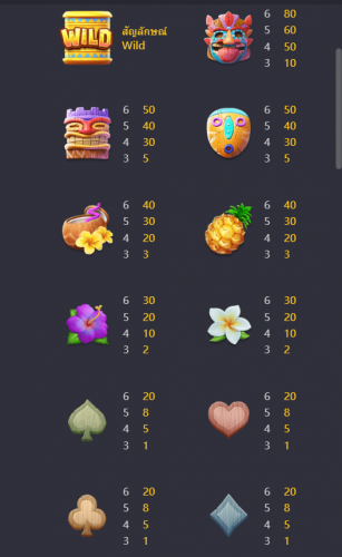 สัญลักษณ์และอัตราการจ่าย Hawaiian Tiki